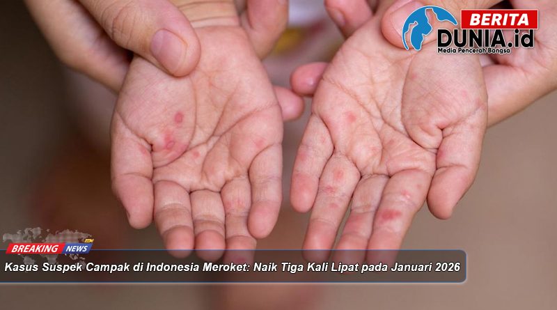 beritadunia.id — Jakarta — Kementerian Kesehatan Republik Indonesia mencatat lonjakan tajam kasus campak pada awal 2026. Data resmi menunjukkan bahwa suspek