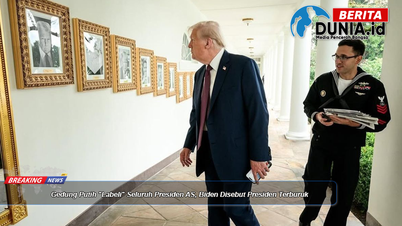 Beritadunia.id — WASHINGTON, DC — Gedung Putih kini menjadi sorotan dunia setelah memasang deretan plakat baru di bawah potret mantan Presiden Amerika Serikat (AS) yang dinilai sangat kontroversial. Di antara pesan-pesan yang tertulis, nama Joe Biden mendapat label tajam sebagai “presiden terburuk dalam sejarah Amerika”, sebuah klaim yang dikaitkan dengan kebijakan administrasi terbaru di Gedung Putih.