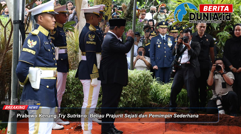 Beritadunia.id – Menteri Koordinator Bidang Politik, Hukum, dan Keamanan (Menko Polhukam) Prabowo Subianto menyampaikan penghormatan tinggi kepada Try Sutrisno, mantan Wakil Presiden Republik Indonesia sekaligus tokoh militer senior. Kenangan itu diungkapkan Prabowo saat memberikan sambutan dalam rangkaian kegiatan ziarah dan peringatan jasa almarhum Try Sutrisno yang dikenal sebagai prajurit sejati dan pemimpin sederhana.