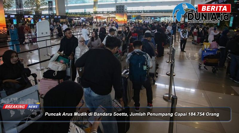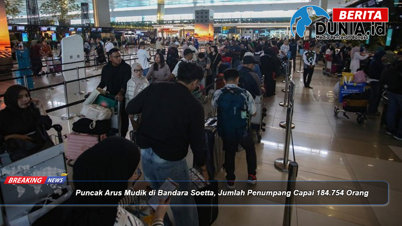 Beritadunia.id – Lonjakan penumpang pada musim mudik Lebaran 2026 mencapai titik puncaknya di Bandara Internasional Soekarno-Hatta (Soetta), Tangerang, Banten. Dalam satu hari, jumlah pergerakan penumpang tercatat mencapai 184.754 orang, menjadikannya salah satu periode tersibuk dalam arus mudik tahun ini.