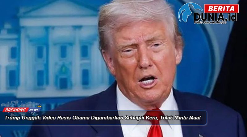 Beritadunia.id — Presiden Amerika Serikat Donald Trump kembali memicu kontroversi besar. Ia mengunggah sebuah video bernuansa rasis di media sosial Truth Social. Video itu menampilkan mantan Presiden Barack Obama dan mantan Ibu Negara Michelle Obama sebagai kera.